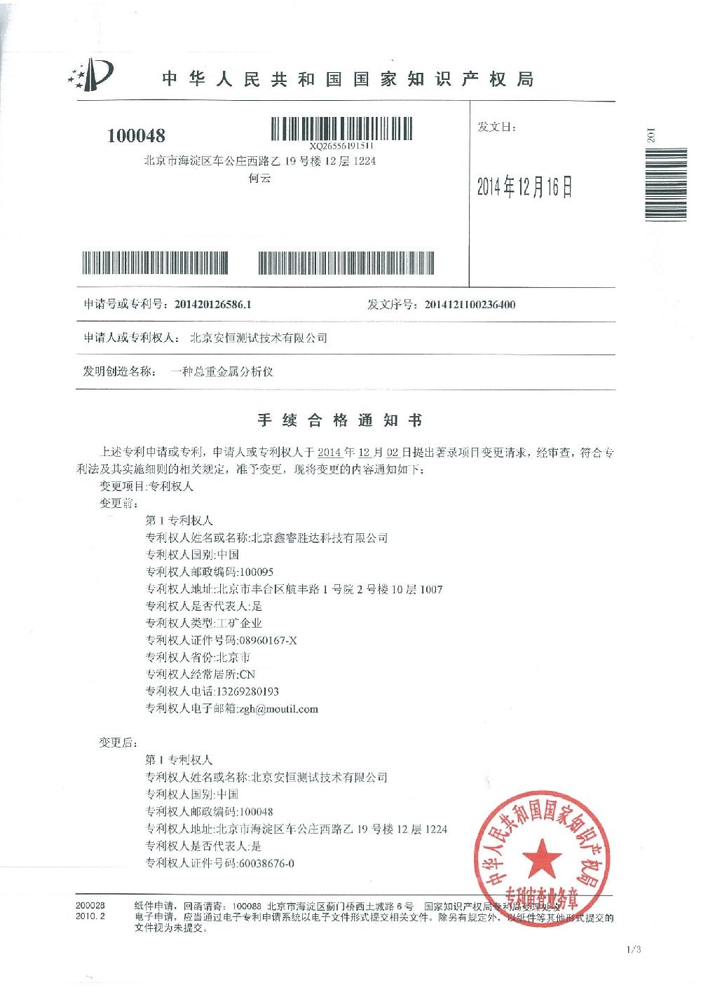 安恒新闻 / 安恒新闻 / 关于安恒 / 实用新型—— *种总重金属分析仪